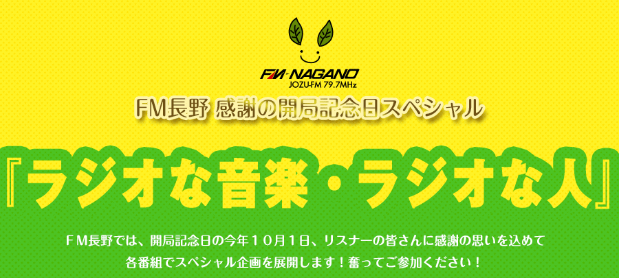 FM長野TOPページ > FM長野 感謝の開局記念日スペシャル『ラジオな音楽・ラジオな人』